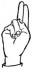 На ћирилици написано ПУРЕШ ПОСТОЛОВИЋ састоји се из 15 слова [?]. Исписано ћириличном једноручном азбуком за глувонеме: